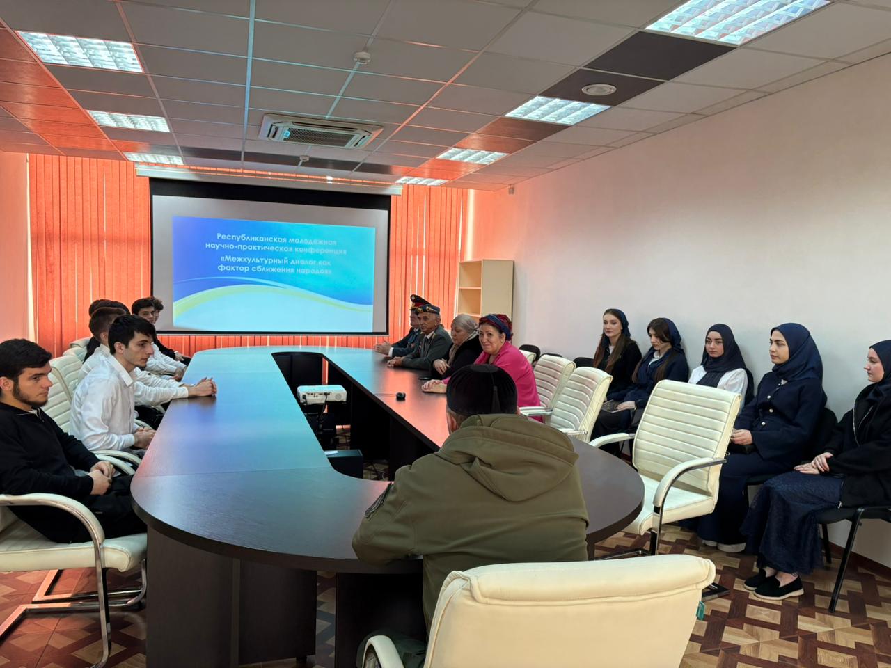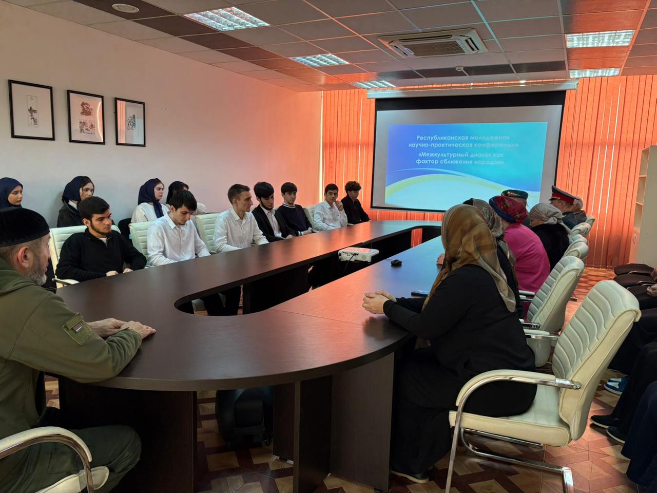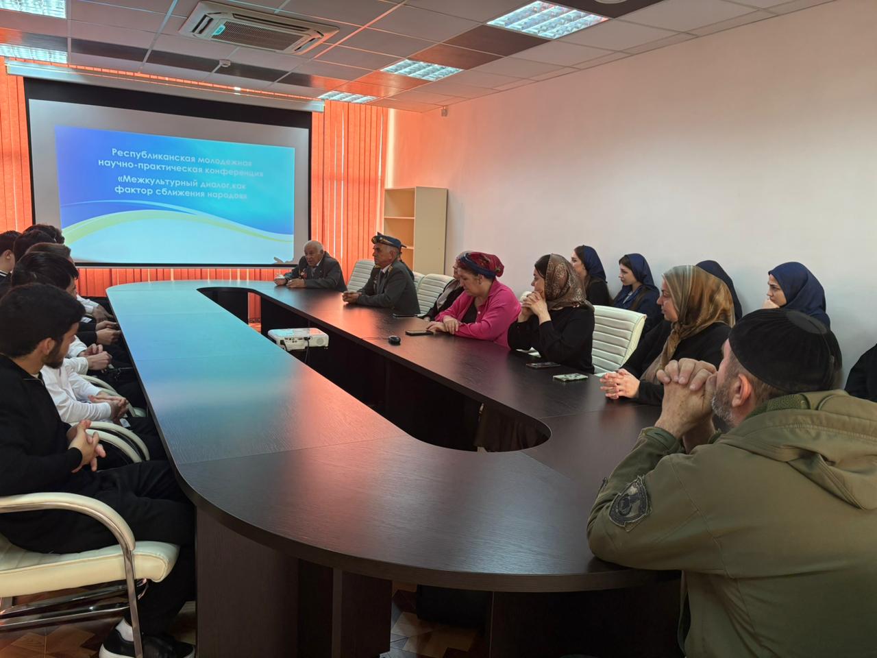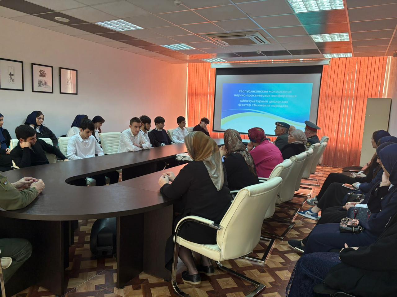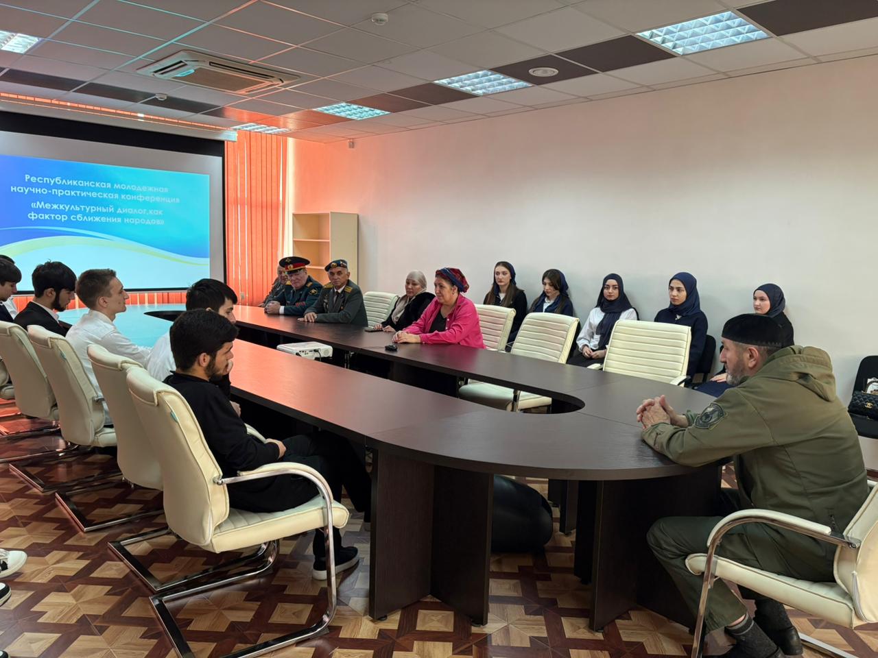 18 ноября в Национальной библиотеке им. А.А.Айдамирова студенты ЧГК приняли участие в республиканской молодежной научно-практической конференции «Межкультурный диалог, как фактор сближения народов». В нем принимали участие: Гучигов С.Б- председатель общественной организации по гармонизации межнациональных организаций, эксперт по национальным вопросам; Луганская С.В.-заместитель руководителя ЧРО Комитета Семей Воинов Отечества по взаимодействию с регионами ; Мурадова Е.Т.-координатор Всероссийской патриотической акции" Я вернулся, Мама...", а также общественные деятели республики.